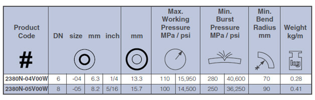 Ultra high pressure service with petroleum based hydraulic fluids, water*-glycol and water*-oil emulsion hydraulic fluids, grease, lubricants, crude and fuel oils, air and water.